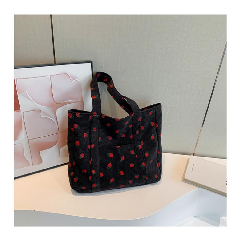 Bolsa Tote Versátil com Estampa de Veludo Cotelê Grande Capacidade Bolsa de Ombro