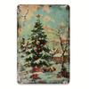 2D Vintage Christmas Tree Snow Village Metal Tin Sign 8x12 Inch Holiday Wall Decor Aluminum Craft Pre Drilled Holes For Home Bar Cafe Garage