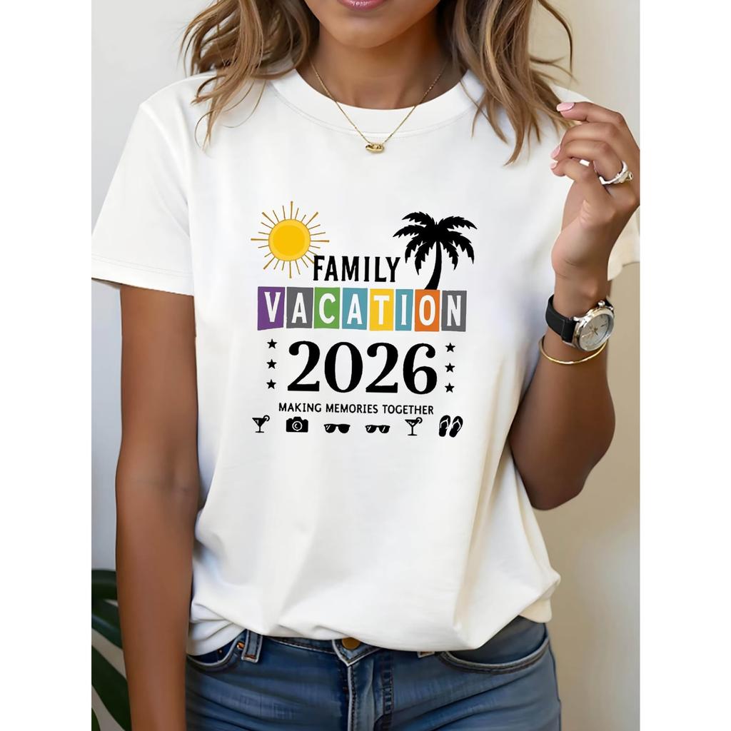 New Year FAMILY VACATION 2026 Printed Women'S Round Neck T-Shirt for Spring and Summer