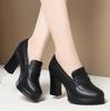 Comfort Fashion Deep Mouth Soft Leather Women's Platform Shoes Elegant Black Block High Heels Shoes Single Shoe for Office Women