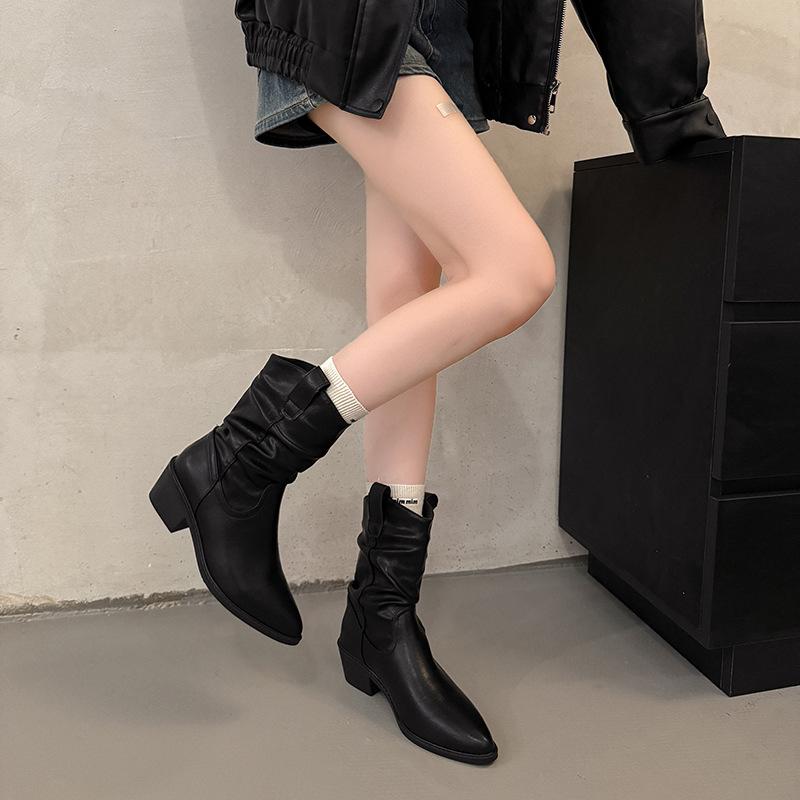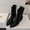 2026 Autumn New Knight Boots Retro Mid Barrel Stacked Boots Western Thin Boots Women's Coarse Heel Short Boots