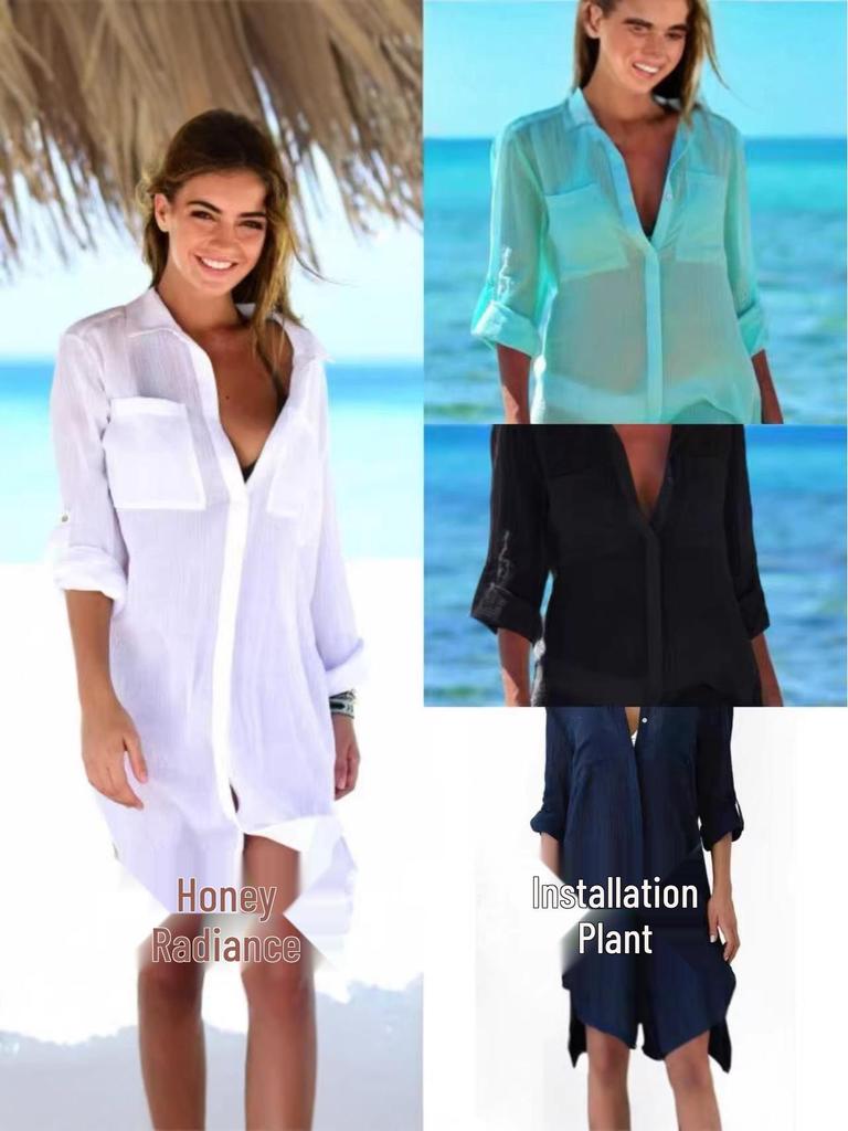 Women's Summer Swimwear Cover-Up: Two-Pocket Bikini Outerwear with Sun Protection