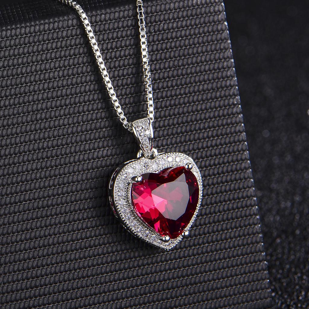 New exaggerated European and American heart-shaped simulated ruby tourmaline encrusted zircon love pendant women's fashion necklace