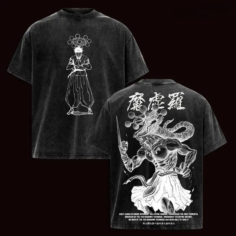 Hot Anime Jujutsu Kaisen Ryomen Sukuna Mahoraga Clothing Men Tshirts Washed Cotton Tee Retro Oversized T-shirt Harajuku T Shirt