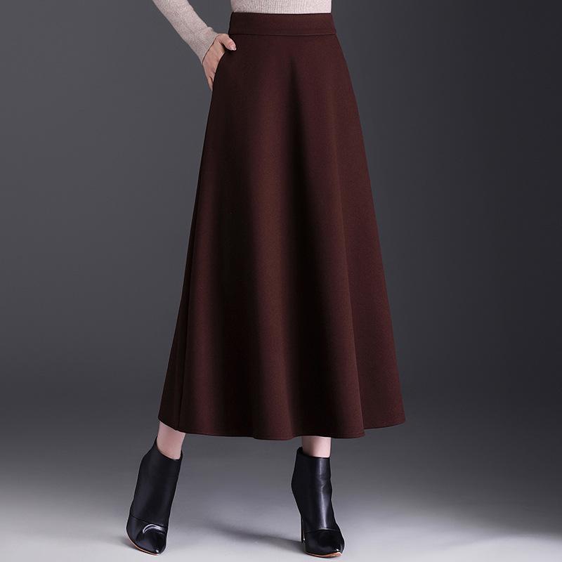 Trendy Women's Winter Woolen A-Line Half-Skirt: Mid-Length Flare Design