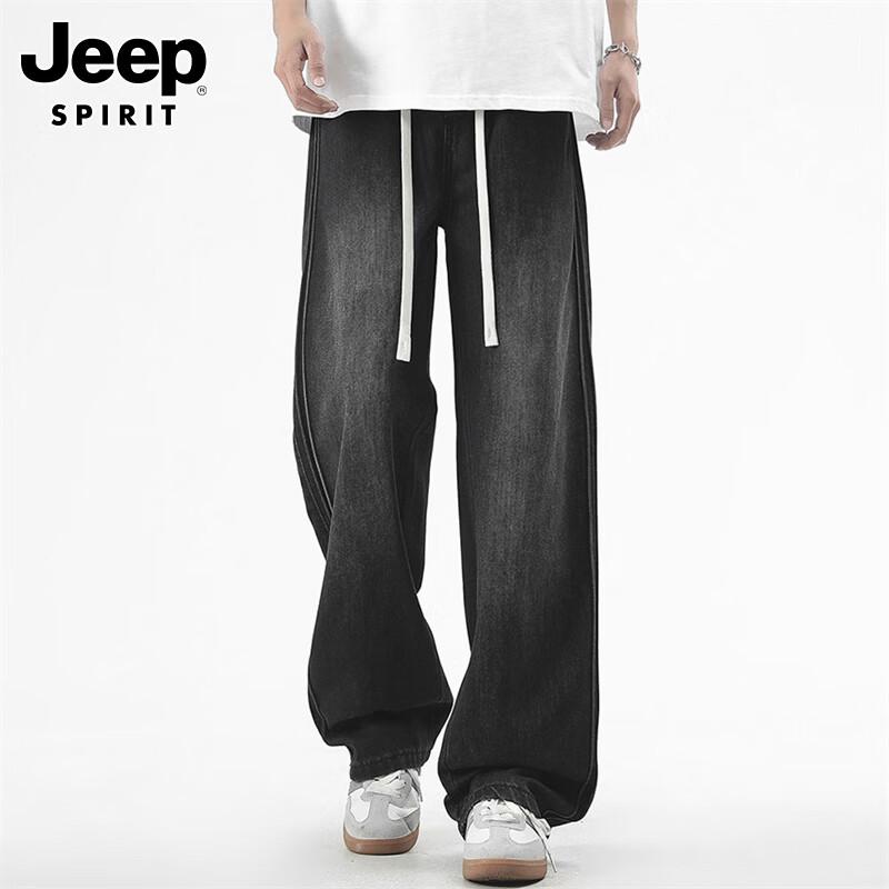 JEEP SPIRIT Men's Ice Silk Wide-Leg Straight Jeans