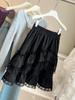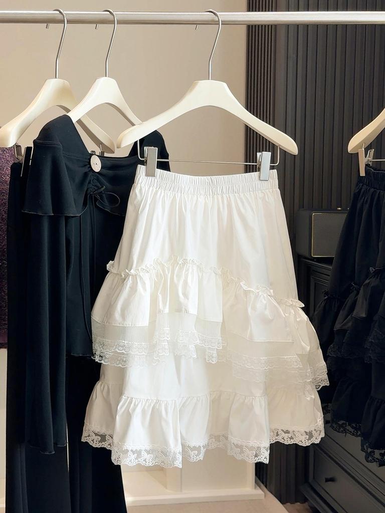 Sweet & Fresh Layered Lace Ruffle Hem Midi Skirt - High-Waisted, Fluffy Spring/Summer 2026 Collection
