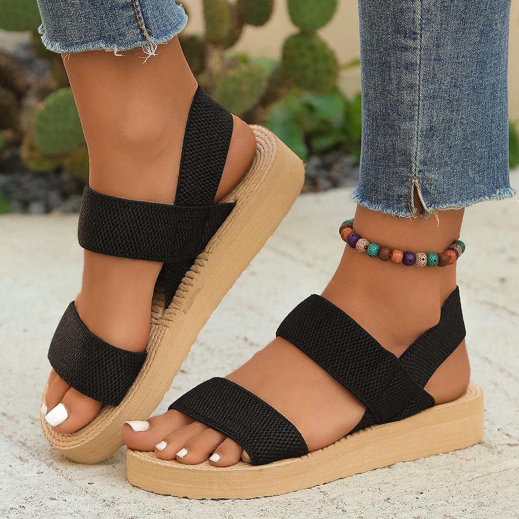 Wear thick-soled woven cool slippers for women's fashion large-size casual flat-soled sandals for women