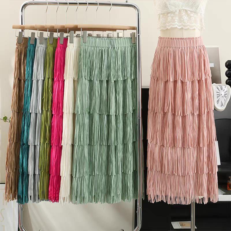 Women's High-End Pleated Fringe Skirt: New Summer Layered Cake Design, Slimming Hip-Hugging Fit