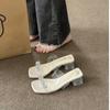 Fairy Style Fashionable Square Toe Rhinestone Party High-heeled Elegant Sandals for Women's Summer Mid Heeled Slippers