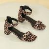 2026 New Style summer women fashion versatile sandals sexy leopard print square heel shoes buckle women's Large size high heels
