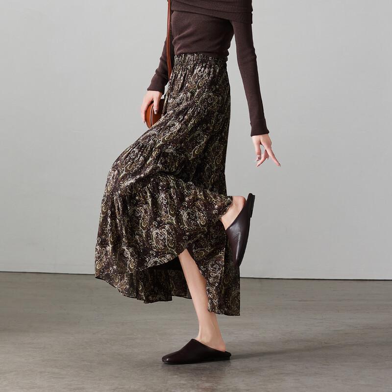 SOFSIL Women's Geometric Print Pleated A-Line Maxi Skirt