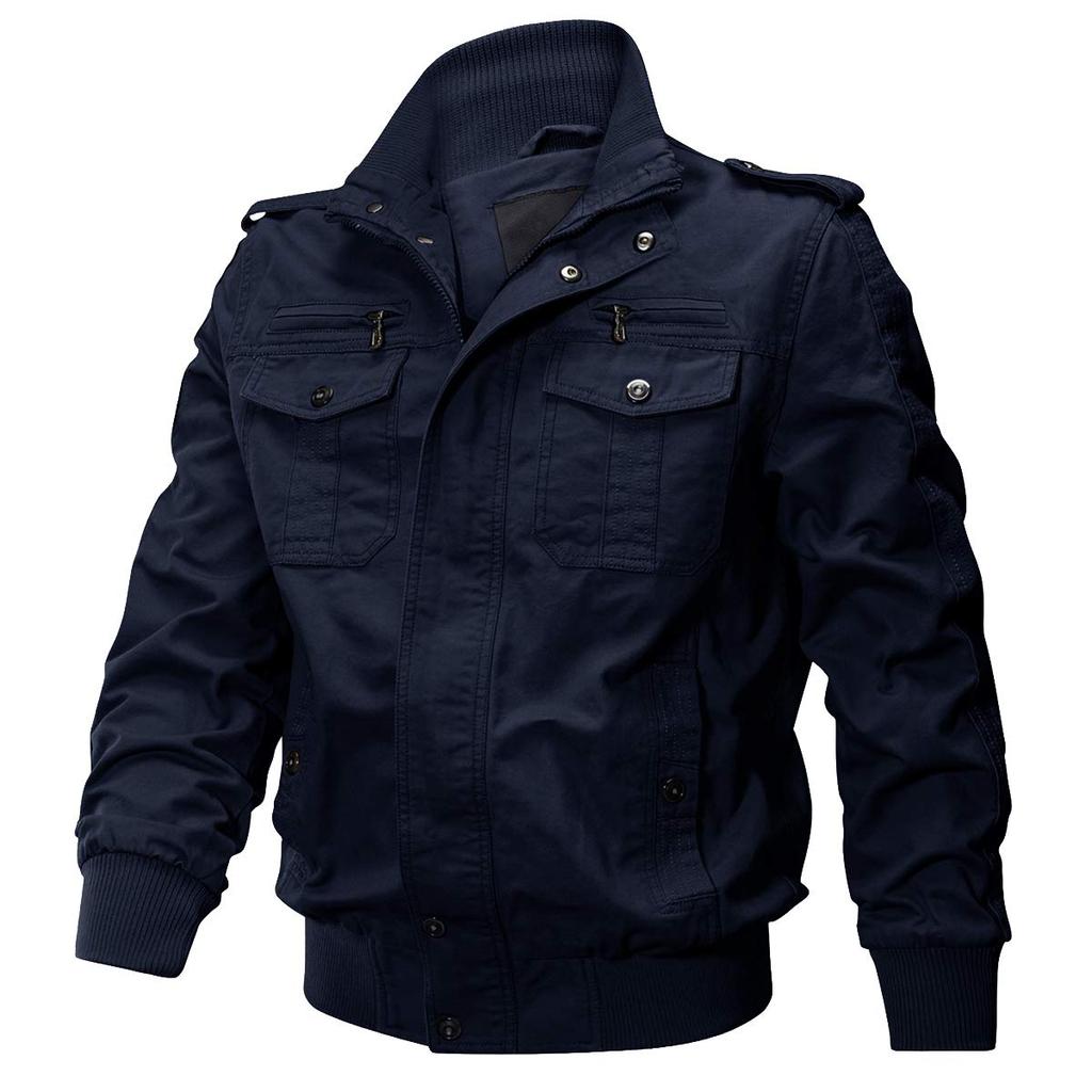 KEFITEVD Jaqueta de Inverno Casual Leve Estilosa do Exército com Tamanho Padrão Roupa de Primavera Jaqueta Masculina, Bolsos, Gola, Azul Marinho, 3XL, Roupa de Trabalho,