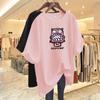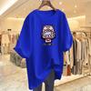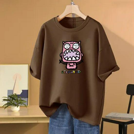 Elevate your summer wardrobe with this oversized and stylish top, featuring a retro cartoon print that adds a playful touch to any outfit. Crafted from a blend of milk silk and artificial silk material, this mid-length, loose-fitting T-shirt offers a luxurious feel and breathable comfort. The design includes a classic round neckline and short sleeves, making it perfect for casual outings or laid-back gatherings. Whether paired with jeans, shorts, or skirts, this top is a versatile choice for effortless summer chic.