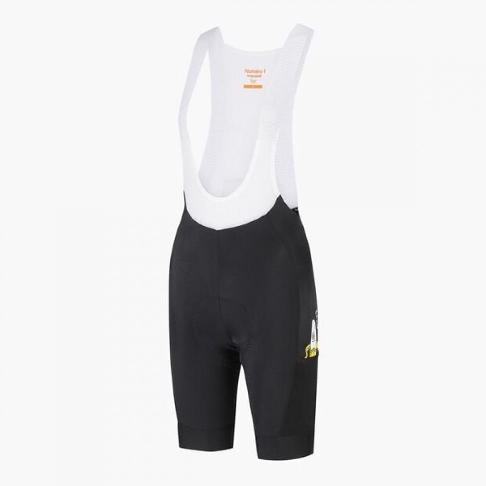 O Calções de Bib Feminino BLK é feito de tecido de malha italiano, conhecido pela sua excelente elasticidade e durabilidade. Possui uso de cadeado para absorção superior de choque e ombreiras importadas para elasticidade aprimorada. As costas são projetadas com impressão refletora 3M para melhorar a visibilidade à noite, tornando-as uma peça de colaboração com o artista A-HOT, combinando estilo e funcionalidade.