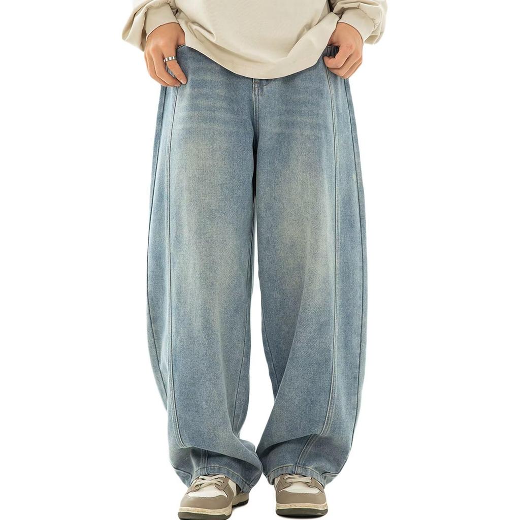 WUXZHI Wide Leg Denim Pants Men's XL Blue Hip 120cm Baggy Jeans Loose Fit