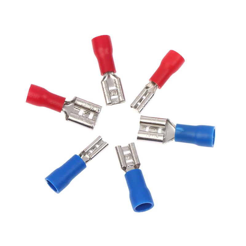 100 Peças Conector de Fio de Terminal de Pá Isolado Macho Fêmea Terminais de Conexão Elétrica por Crimpage Plugue de Cabo de Fiação Vermelho Azul Amarelo