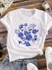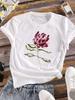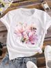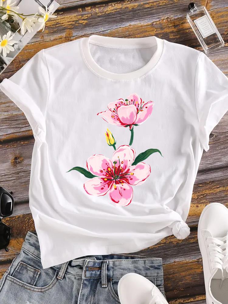 (Asian Size) o-neck T Shirt Printed Female style flower cute Top Lady Clothing Casual Fashion Women Graphic Tee Short Sleeve T-shirts