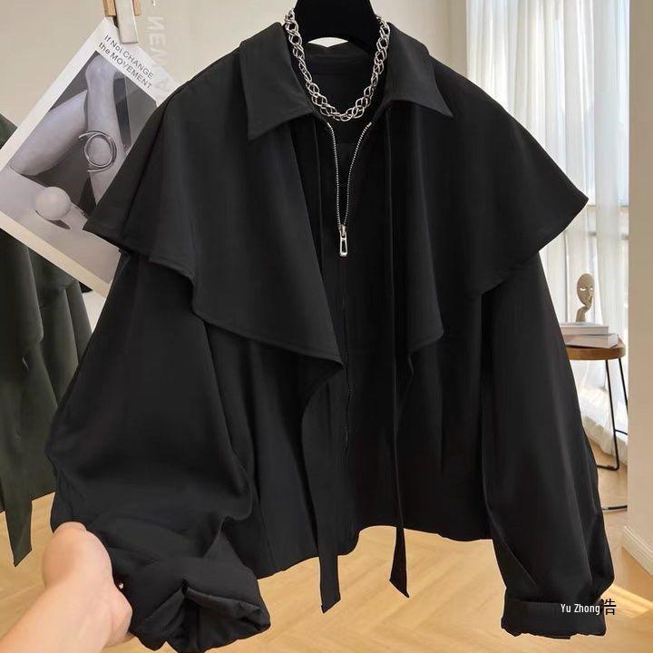 Elevate your wardrobe with this chic women's shawl cape coat, perfect for the Spring and Autumn seasons of 2026. Crafted from high-quality spandex, this versatile piece combines comfort with a fashionable edge. The jacket-style top features a modern turn-down collar and an elegant cape design, making it an ideal choice for layering over any outfit. With its unique blend of style and functionality, this sleeveless coat is a must-have for any fashion-forward individual.