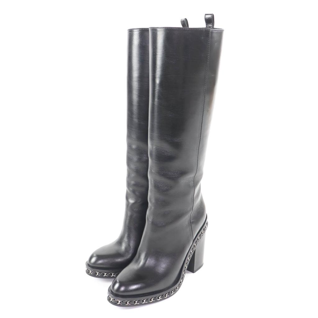 Great CHANEL Knee-high boots black leather Women 36 G30379 Used