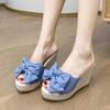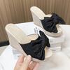Cross-border large-size women's shoes spring new fashion Korean version bow one-word wear slope heel cool slippers women
