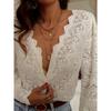 Women's Hollow Out Lace Shirt, Solid Color V-Neck Long Sleeve Loose Sexy Blouse, Casual Fashion Elegant Top