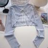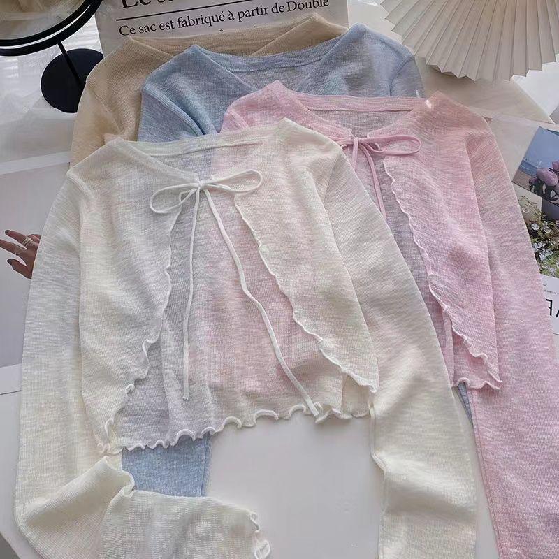 Cardigan Curto de Malha de Seda Gelada Feminino com Saia Camisola e Xale Pequeno - Proteção Solar Leve de Verão