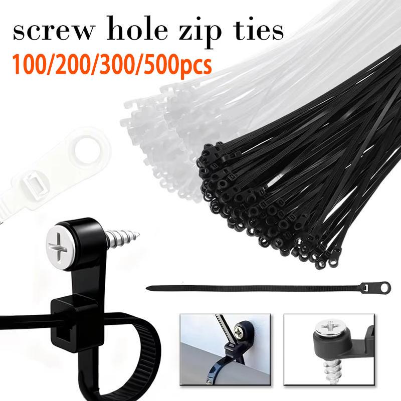 100 PEÇAS Abraçadeiras para Furos de Parafuso Reutilizáveis Fixas de Nylon Abraçadeiras de Corda Autotravantes Tiras Laço de Fixação Organizador de Escritório