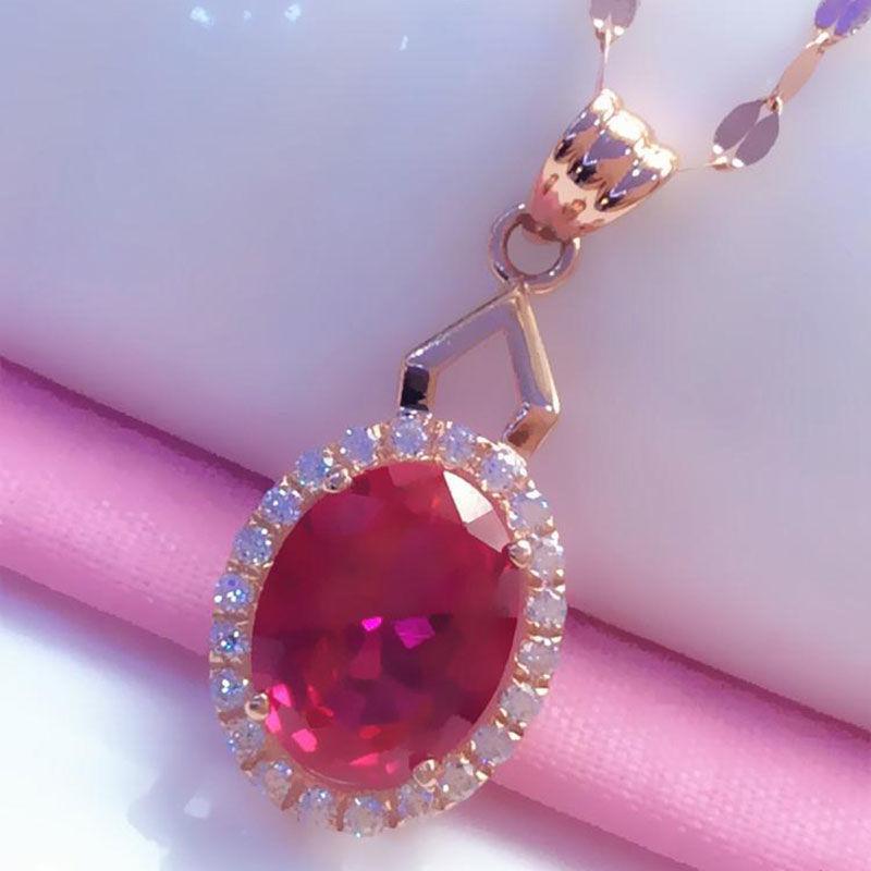 Exquisite Russian Purple Gold-Plated Rose Gold Redstone Pendant, Simple Fashion And Luxury Temperament, High-End Colored Gold Chain.