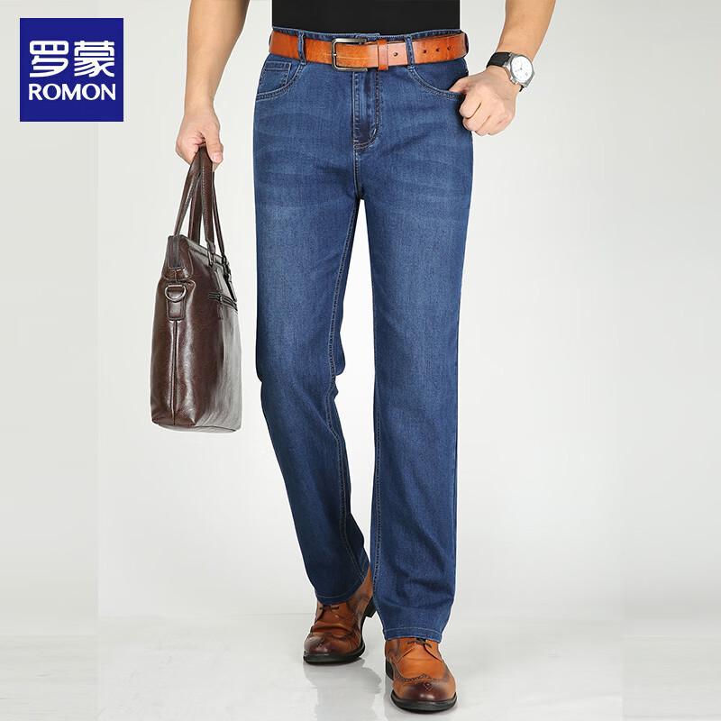 ROMON Men's Elastic Straight-Leg Business Casual Jeans