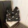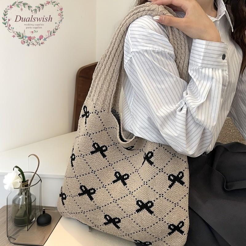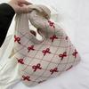 Chegada Nova 2026 Moda Ins Feminina Bolsa Tote de Tricô Grande Capacidade Padrão de Laço Bolsa de Ombro Tecida para Uso Diário