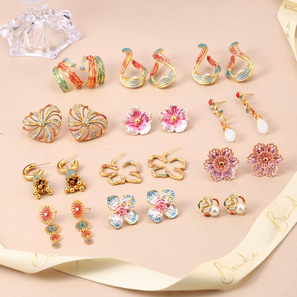 French silver needle flower painted medieval earrings niche design pearl explosion spring and summer stud earrings