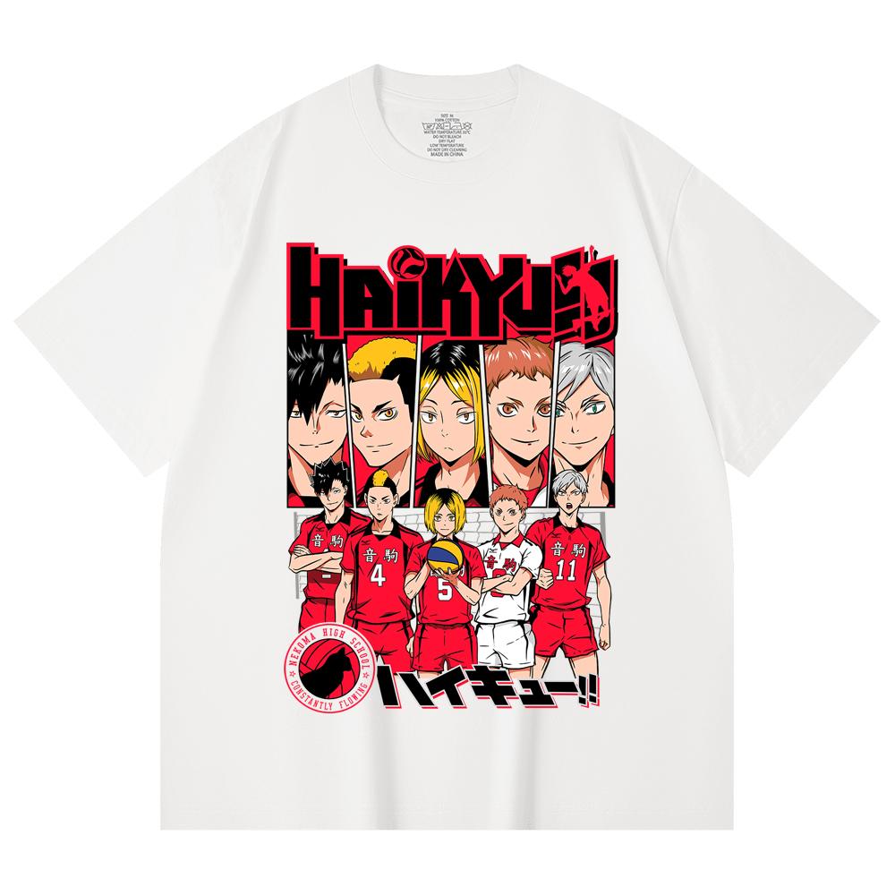 230 Gsm 100% Cotton Haikyu V8 Nekoma High Print Unisex Heavy Cotton T Shirt