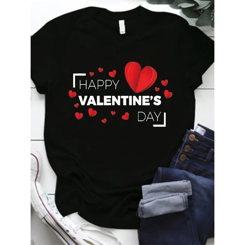 Womens Plus Size Round Neck Valentine's Day Print T Shirt