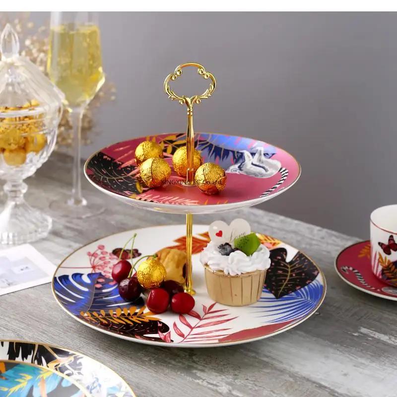 Nordic Light Luxury Cake Stand Double Fruit Plate Fantasy Jungle Animal Tray Household Dim Sum Candy Ceramic Tableware