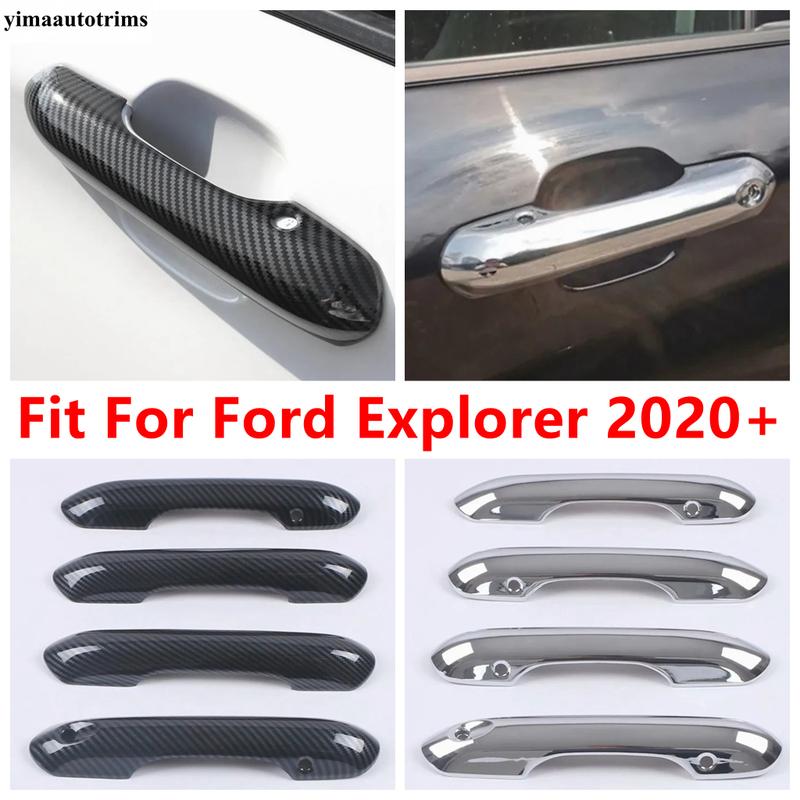 Car Outer Door Handle Bowl Decoration Protection Cover Trim ABS Chrome / Carbon Fiber Accessories For Ford Explorer -