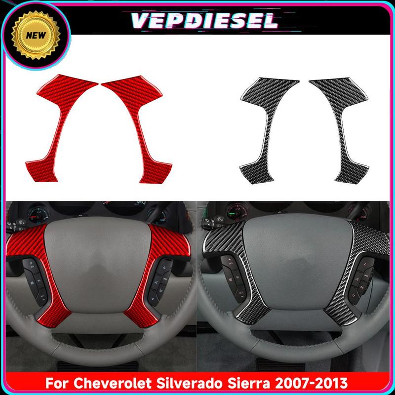 New Car Steering Wheel Button Cover Trim Sticker Decoration For Chevrolet Silverado Sierra 2007-2013 Red Black Carbon Fiber Look