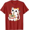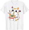 Cute Ramen Eating Kawaii Cat Graphic Tee Anime Neko Lovers Casual Cotton T-Shirt