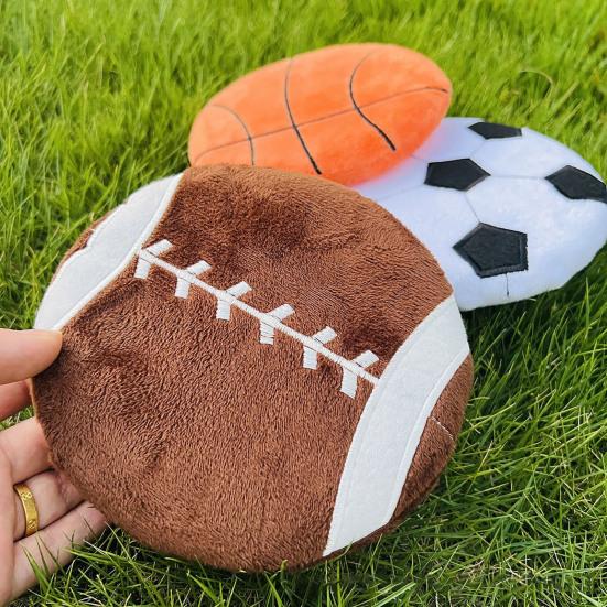 Projetado em formas clássicas de bolas esportivas como futebol, basquete e rúgbi, estimula os instintos naturais de perseguição e mordida do seu pet para uma brincadeira mais envolvente.. O material de pelúcia macio e amigo da pele protege as gengivas e a boca do seu cão, tornando-o seguro para filhotes em fase de dentição.. Versátil no uso, este brinquedo resistente à mastigação também funciona como um disco voador para jogos de lançar e buscar, promovendo diversão interativa e fortalecendo o vínculo entre você e seu animal de estimação.