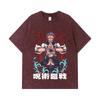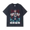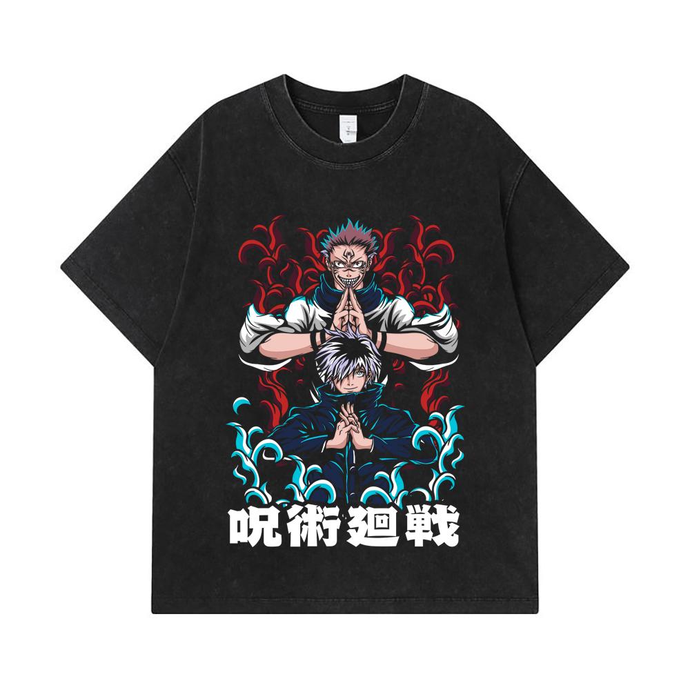 275 GSM Washed T-shirts 100% Cotton Jujutsu Kaisen V49 Gojo Sukuna Print Unisex Heavy Cotton T Shirt