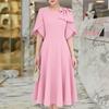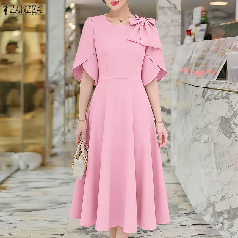 ZANZEA Women Casual Round Neck Bows Splice Half Sleeve Loose A-Line Dress