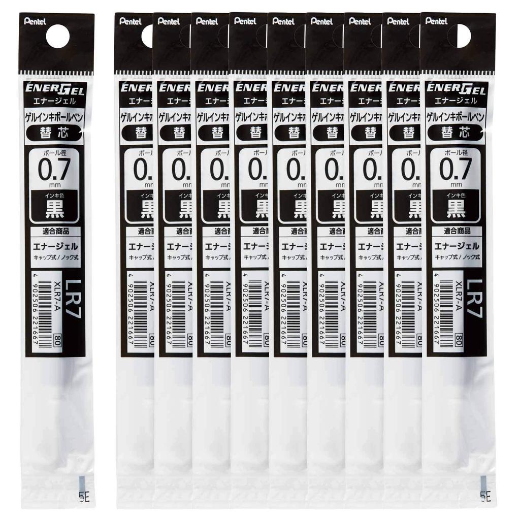 PENTEL Cargas para Caneta Esferográfica, EnerGel, 0,7mm, XLR7-A, Preto, Pacote com 10