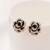 Famous Flower Rhinestone Ear Studs High End Boucles Jewelry Black Camellia Earrings Women FancyFlower Ear Studs