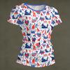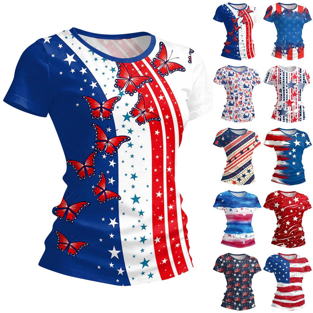 Women's Fashion Round Neck Independence Day Print Short Sleeve Loose Crewneck T-Shirt Top
