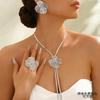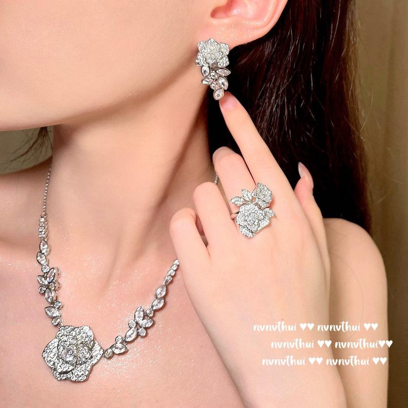 Colar de Pedra Rosa de Damasco, Felicidade de Mulher Rica, Banhado a Ouro 18K, Brincos de Zircônia Rosa Videira.