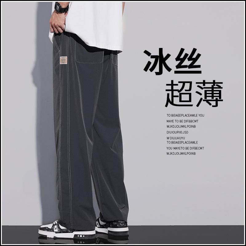 Ice Pants Men's Summer and Summer Loose Mopping Wide Legs Thin High-end Trendy Handsome Straight Casual Pants