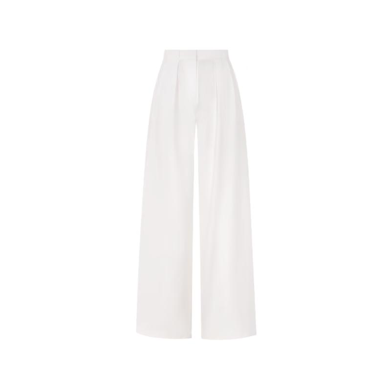 LANCY White 3D Pleated Wide-Leg Trousers