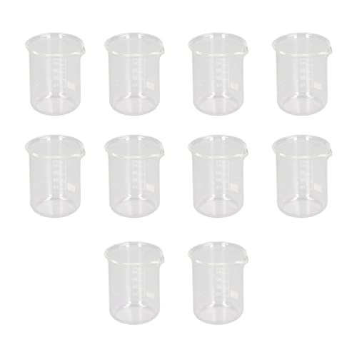 10-Piece 50ml Glass Measuring Cup and Glass Measuring Beaker Set with Graduated Scientific Glassware for Labs, Classrooms, and Home Use
