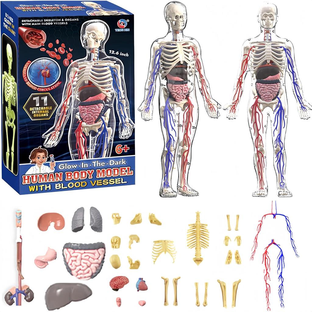 UKYCEORA Whole Body Vascular Model Human Anatomy Model Educational Skeleton Model 32cm with Removable Parts Fully Transparent Educational Toy for Boys