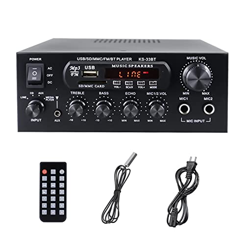 Compact Bluetooth Power Amplifier, 110V, 60W Stereo Amplifier, Black, with USB Input, Multi-EQ Remote Control, and Bluetooth 4.0 for Karaoke.